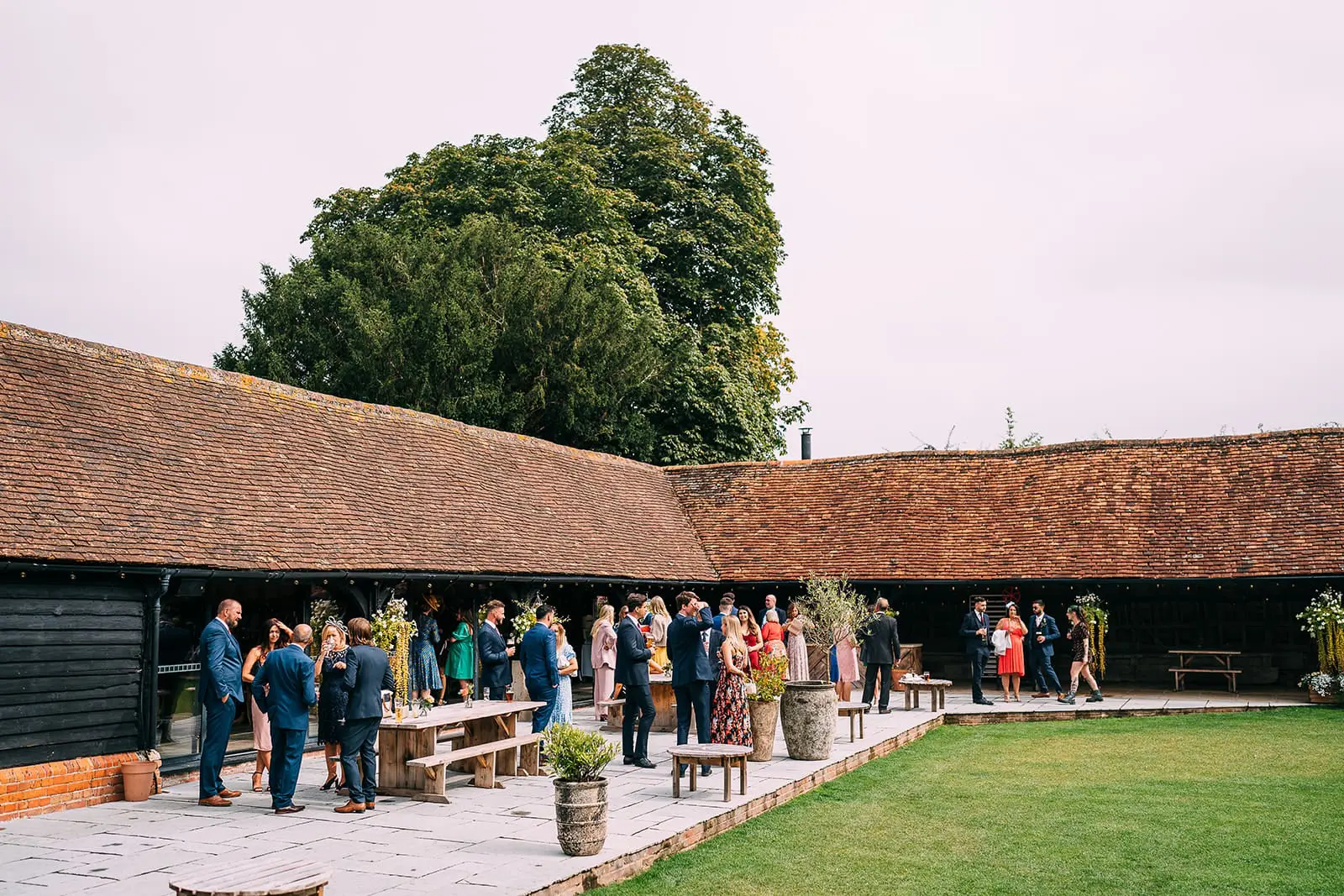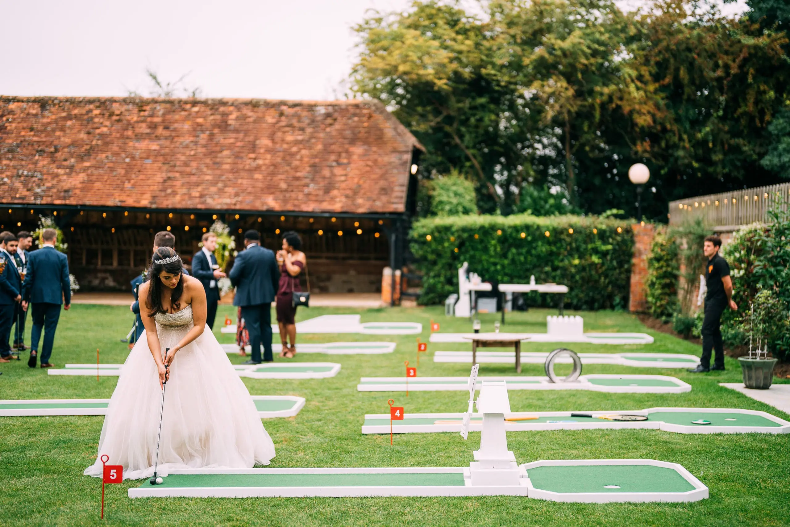 Next to the green is our paved terrace, which comes alive at cocktail hour. It’s also ideally placed for a champagne reception (and a heel-friendly option for those who want to avoid sinking into grass!).